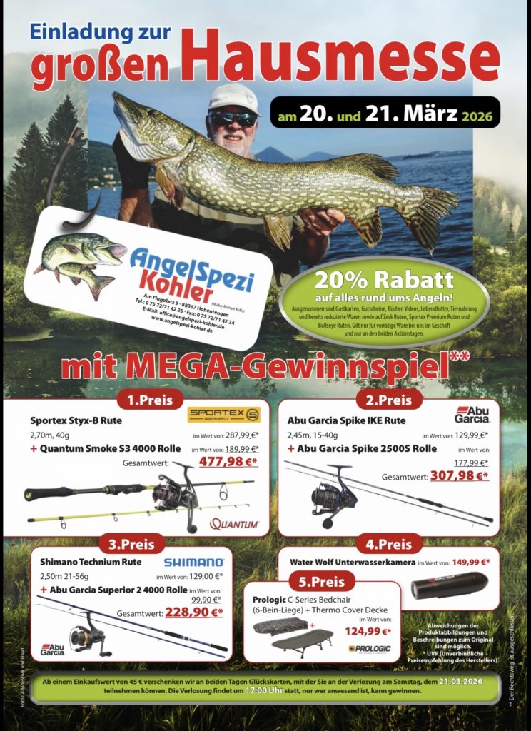 Angelgeräte und Heimtierbedarf auf über 400m² Verkaufsfläche